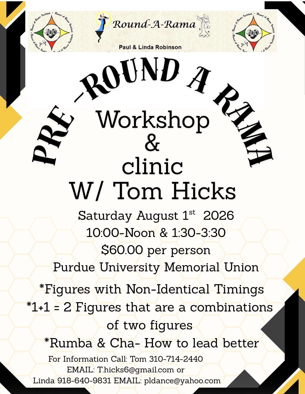 - Aug 1-6, 2026 Round-a-rama Featured cuers: Bill & Carol Goss, Randy & Marie Preskitt, Tom Hicks Purdue Memorial Union West Lafayette,IN Contact: Linda Robinson pldance@yahoo.com or 918-640-9831. Flyer